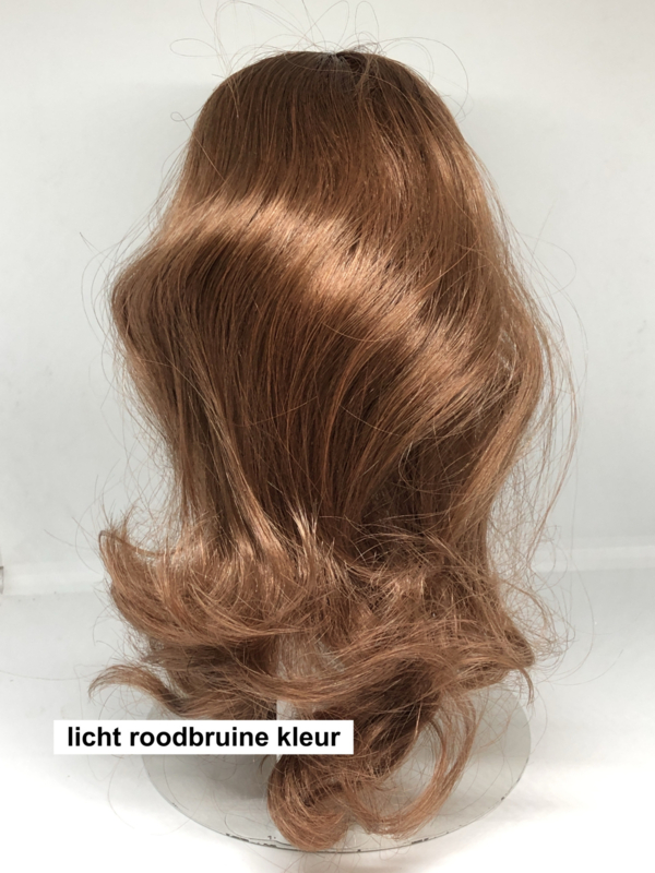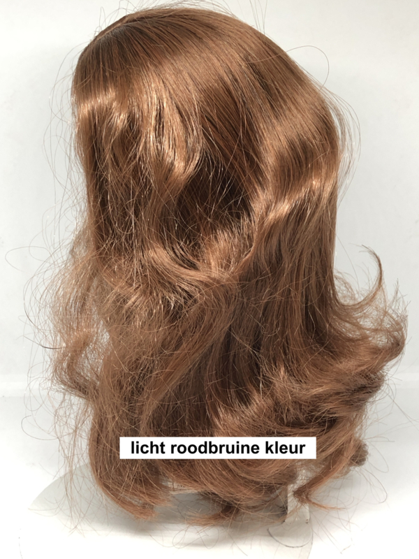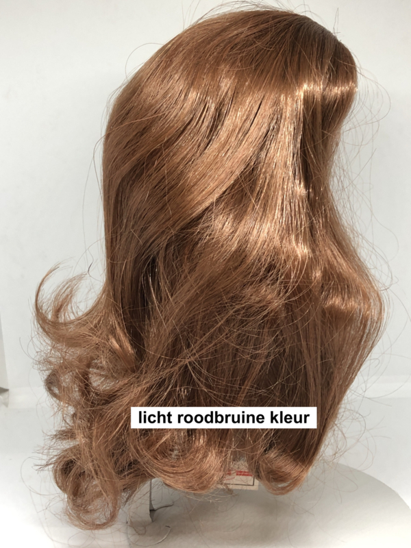Artikelnummer: nummer 110 OverzichtDeze pruik van het merk Prandell is gemaakt van kunsthaar. Het is een lang kapsel zonder pony met een licht roodbruine / kastantjebruine kleur. De pruik is opgebouwd met haartressen die op een textielen kap zijn gestikt. De elastische pruik past op een poppenhoofd met een omtrek van 25 tot 32 cm. Op de laatste foto in deze advertentie wordt getoond hoe de omtrek van het poppenhoofd moet worden opgemeten.