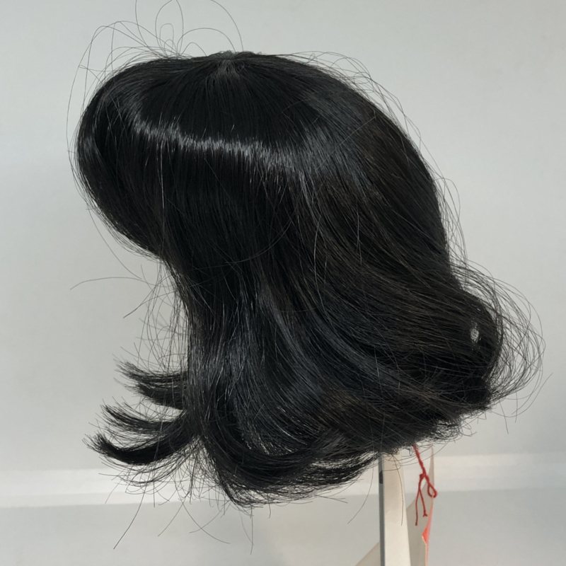 Artikelnummer: nummer 112 OverzichtDeze pruik van het merk Glorex is gemaakt van kunsthaar. Het is een halflang kapsel met pony met een zwarte kleur. De pruik is opgebouwd met haartressen die op een textielen kap zijn gestikt. De elastische pruik past op een poppenhoofd met een omtrek van 28 tot 29 cm. Op de laatste foto in deze advertentie wordt getoond hoe de omtrek van het poppenhoofd moet worden opgemeten.